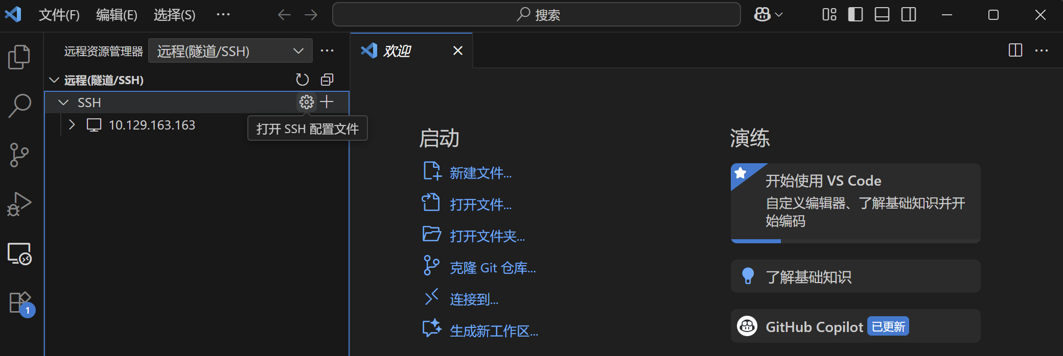 Clicking this gear icon will prompt you to select a configuration file. Simply choose the default option, and you will then open the SSH configuration file.