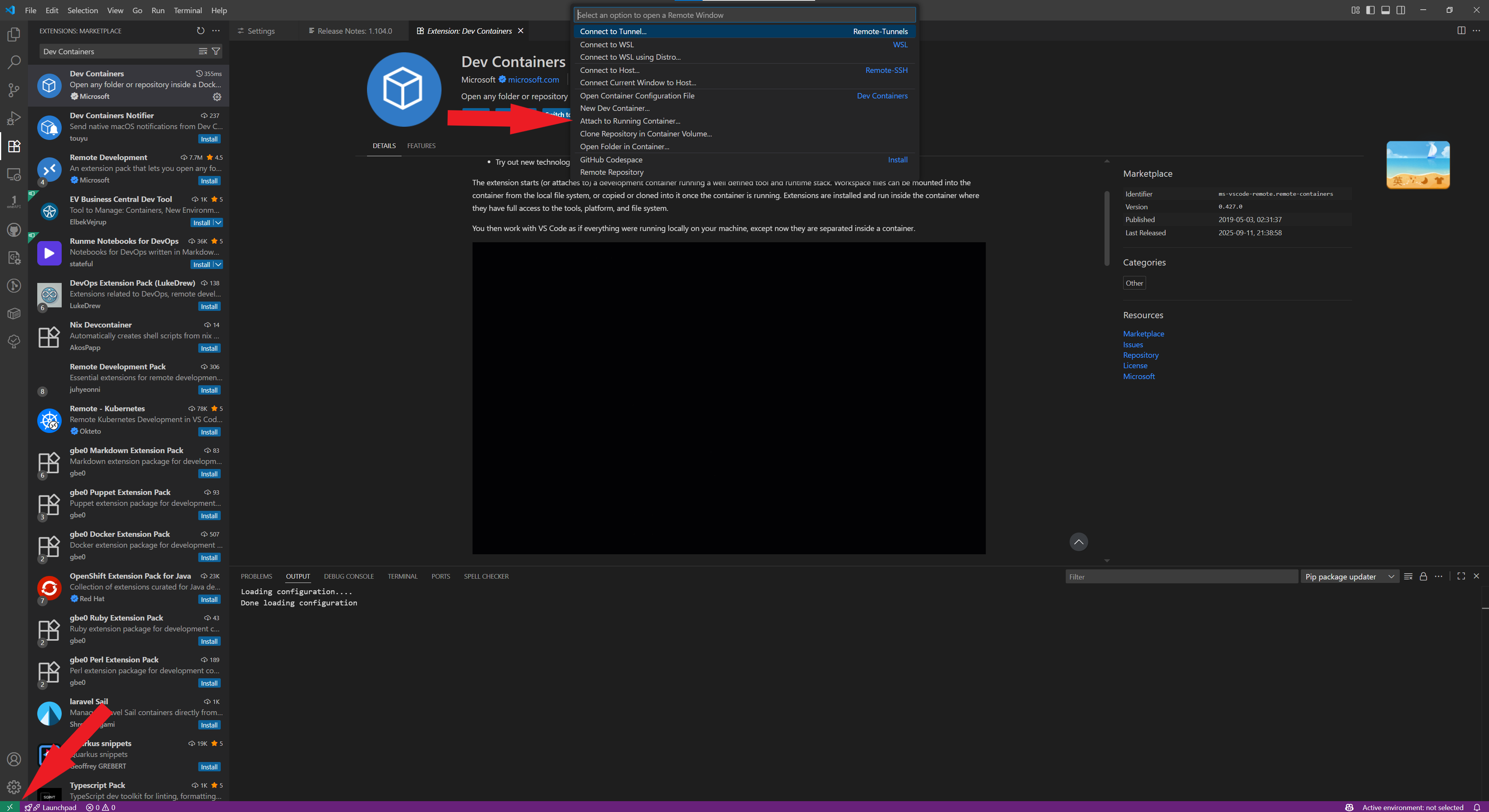 - Search for “Dev Containers” in the search bar at the top of the Extensions list that appears